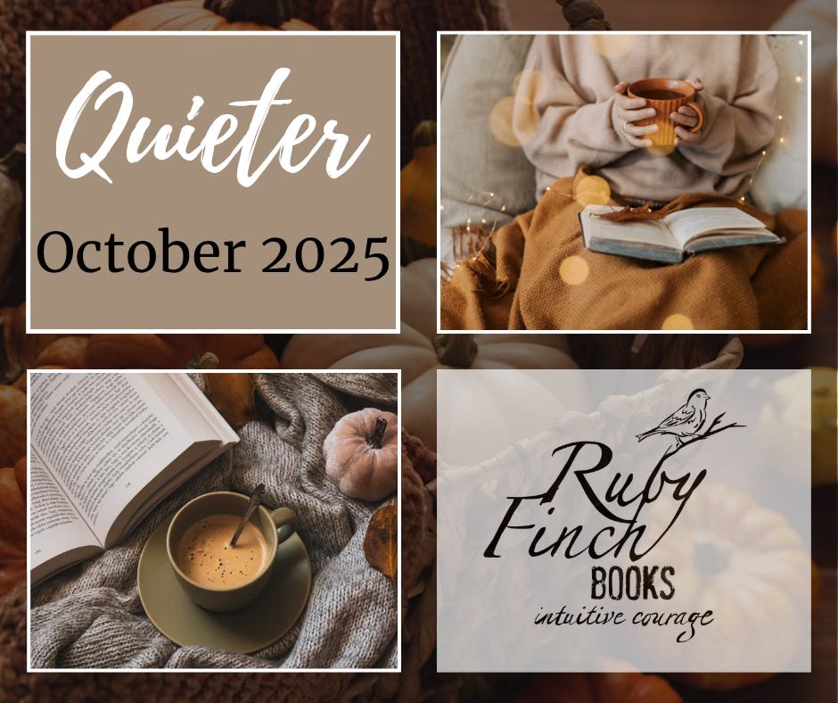 I love October. Thanksgiving, with turkey, candied yams, homemade buns, and pumpkin pie. This month, I’m focusing on the last of the three words I chose for 2025 to guide me: Quieter. (In case you are interested, the other two words were Deeper and Simpler and I wrote about them on my blog at julianneharvey.com.)